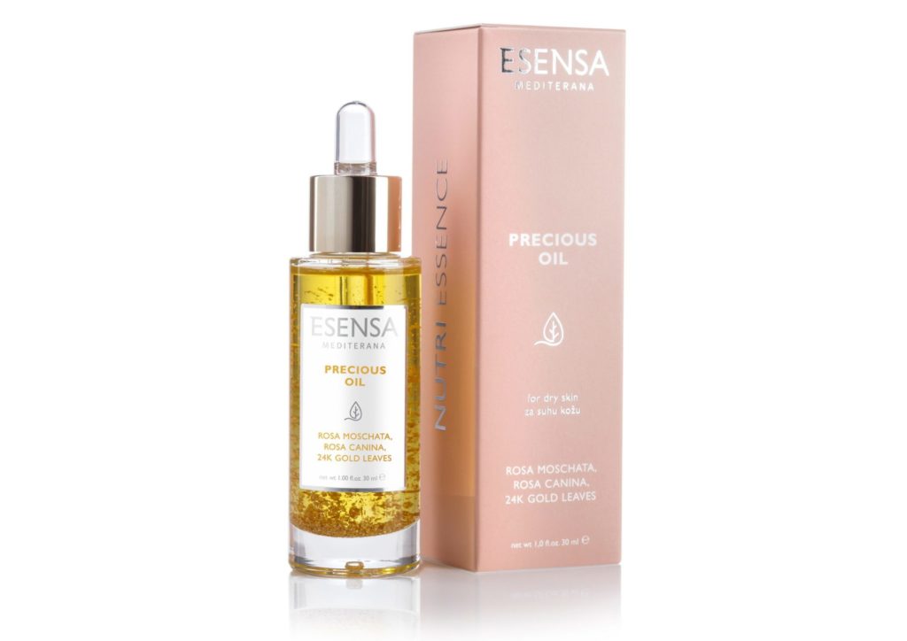 Wer seine Liebe in Gold aufwiegen möchte, braucht dafür nicht zum Juwelier zu gehen: Das kostbare Gesichts-Öl „Precious Oil“ von Esensa Mediterana ist angereichert mit 24-Karat-Goldblättchen und verleiht ein samtweiches Hautgefühl. Zart duftend dank einer edlen Mixtur aus Muskat- und Wildrosenölen, mildert es Falten, hydratisiert und beruhigt die Haut. Die verwendeten Rosenöle enthalten von Natur aus einen Anteil an Retinol, das durch zusätzliches Retinol verstärkt wird. Die anregende Wirkung auf die hauteigene Collagenproduktion ist sicht- und spürbar. Die Goldblättchen verleihen der Haut den gewissen Glow und wirken gleichzeitig antioxidativ. 30 ml des „Precious Oils“ kosten ca. 30 Euro.