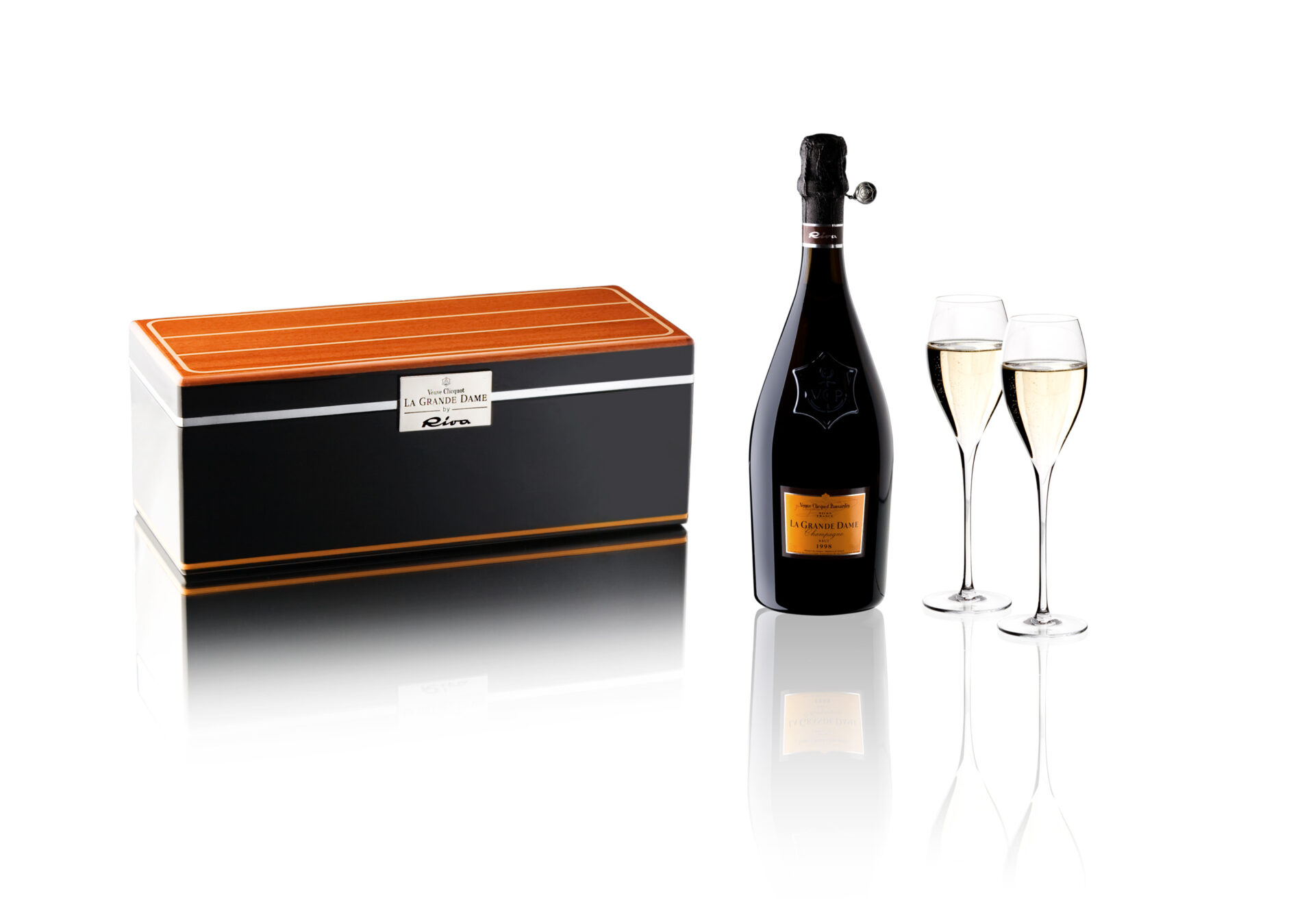 Chromakzenten. Enthält eine Flasche „La Grande Dame 1998“.