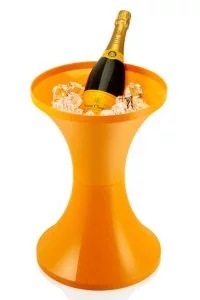 Heraus kam eine Version des Tam Tam, der nicht nur in der typischen Farben der Champagnermarke zu haben, sondern auch mit dem für Veuve Clicquot typischen Augenzwinkern versehen ist. Der Veuve Clicquot Tam Tam lässt sich nämlich von einem Hocker in einen Champagnerkühler umwandeln und umgekehrt.