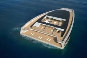 Sie sieht auf den ersten Blick doch ganz schön spacig aus, denn diese Yacht von Wally Yachts Hermès schaut ganz anders aus als die normalen Modelle, die jeder von uns kennt. Die Yacht WHY ist die erste mit nicht parallelen Wohnflächen und einem eigenen Privatstrand an Bord.