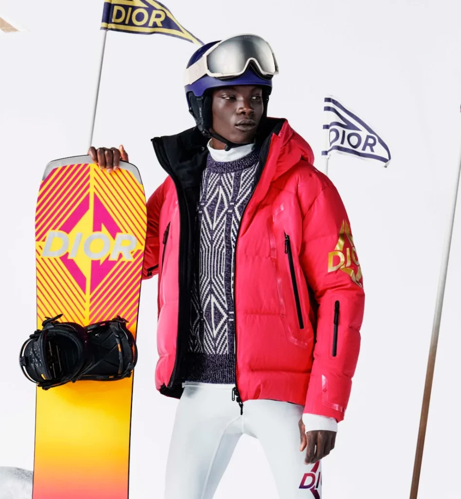 Volle Power Energie und Farbenfreude stecken in der Ski-Sonderkollektion des französischen Labels Dior. Nuancen wie Pink und Violett stechen hervor, kombiniert werden dazu Weiß- und Beigetöne. Für alle Nicht-Skifahrer die sich aber dennoch in die farbenfrohe Kollektion verlieben: Das Label bietet auch Accessoires wie Schals, Mützen und Skisocken in der Farbwelt an, die auch abseits der Piste tragbar sind.